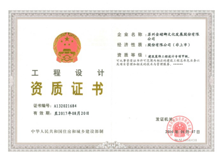 • 建筑裝飾工程設計專項甲級