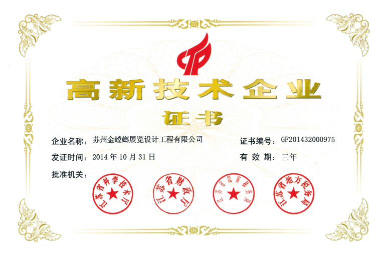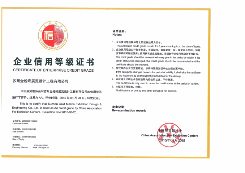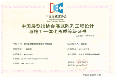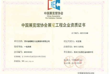 • 中國展覽館協會展覽工程一級資質