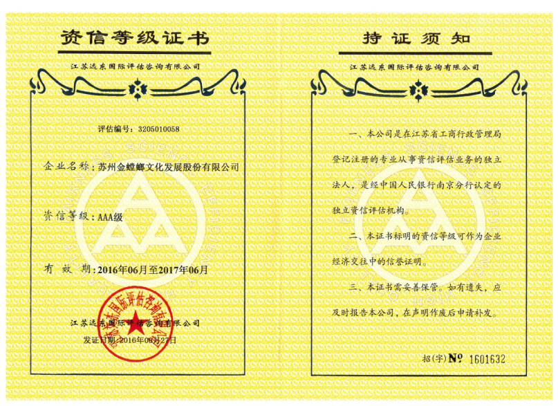 • 中展企業資信等級證書AA