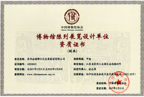 • 中國展覽館協會展覽陳列工程設計與施工一體化一級資質