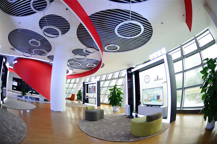 華數(shù)企業(yè)展廳暨國家廣電總局?jǐn)?shù)字電視開放實(shí)驗(yàn)室,位于杭州市華數(shù)白馬湖數(shù)字電視產(chǎn)業(yè)園H 樓一樓, 兼具展覽展示、貴賓接待、創(chuàng)新實(shí)驗(yàn)、培訓(xùn)指導(dǎo)、訪談發(fā)布等功能。展廳主要以多媒體展項(xiàng)為主,其中尤以OLED大型雕塑最為大氣磅礴,由65臺曲面柔性OLED拼接而成,類似雕塑在全球亦屈指可數(shù)。