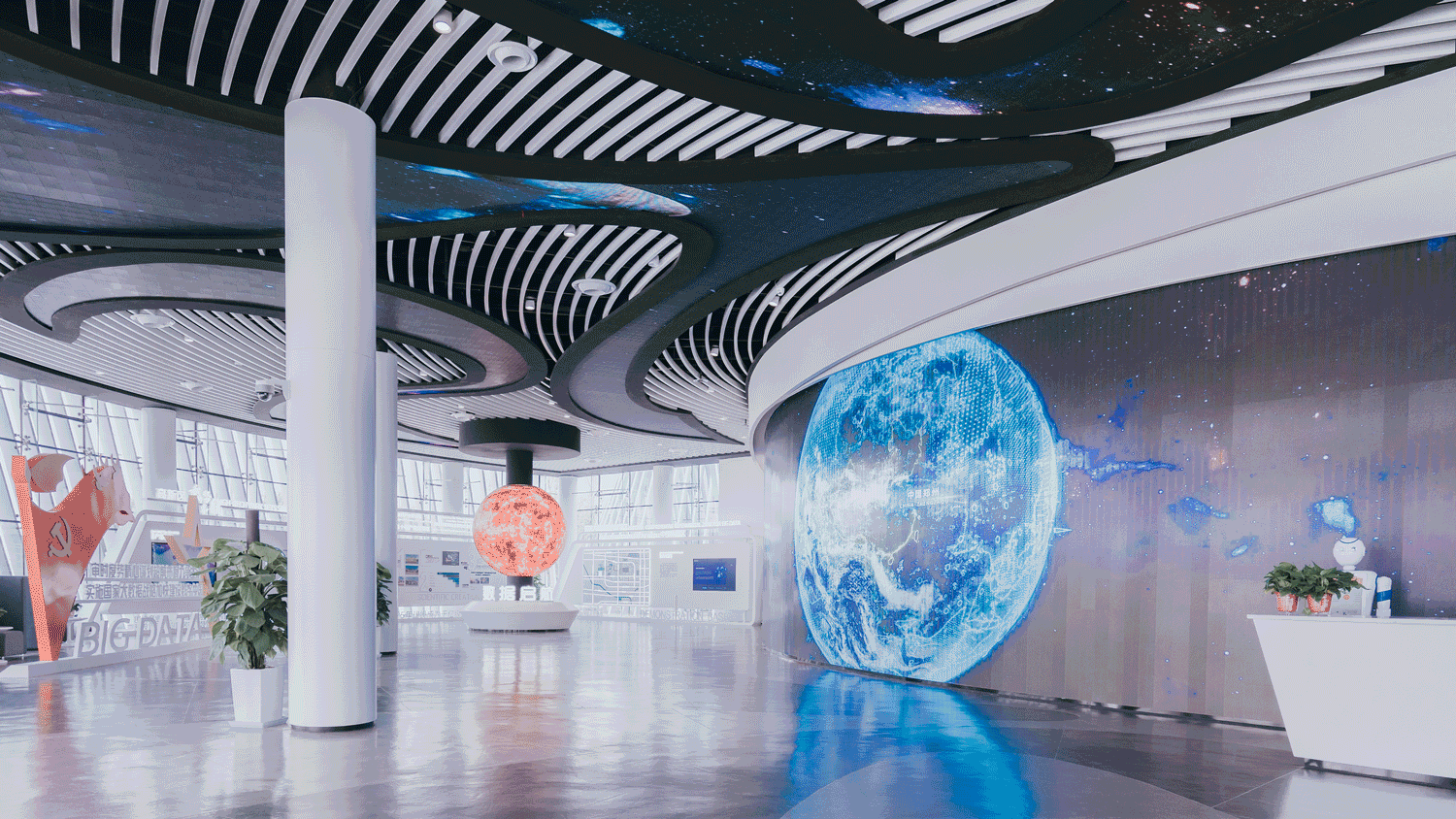 隨著大數據與云計算、5G通信網絡、網絡信息安全產品和服務等新一代信息技術的快速發展,人們的生活方式以及商業的運作模式都悄然改變。借著國家政策扶持的東風,各地大數據產業園應運而生。 金螳螂文化匠心出品重慶永川大數據產業園、鄭州天健湖大數據產業園等主題展廳,通過創新設計,全方位展示大數據項目的運用場景及產業園孵化能力,為引育創新人才、融通創新資本帶來更多可能。 永川大數據產業園 ······● — 重慶市 — ●······ 云谷·永川大數據展示中心位于重慶市永川區大數據產業園C區,1000多平方米的展陳空間內,智慧城市、服務公社、AI、智行天下—雙城智能網聯經濟走廊、云上橫店—全國先進影像制作基地、數字孿生城市—城市數字化管理平臺、西部數據處理基地等區內大數據產業匯聚于此。 大數據產業園將以科技驅動變革為契機,助力永川打造新經濟增長點。 追夢未來 大數據的無限可能 — Infinite Possibilities of Big Data — 展廳以“智慧永川·數據云谷”為主題,整體空間分為云端·智慧永川、沃土·助夢揚帆、征程·銘記芳華、產業·云劃未來、愿景·云端萬象五大板塊,展示產業園以服務外包為基礎,軟件信息、數據處理、數字內容、電子商務融合發展的五大產業集群。 展館采用現代簡約風,將像素和數據流的概念融入空間。展品與傳統形式區分開,利用聲、光、電等多種表現手法,通過互動體驗吸引參觀者的注意力。展項內容靈活可變,能夠隨大數據的發展與變化持續更新。 虛擬主持人--產業園風貌總覽 運用達瓦的動態捕捉和人臉捕捉技術,構建以真人面部和機械軀干合成的虛擬主持人;通過多媒體電子屏幕與模塊芯片上下聯動,詳細介紹永川大數據產業園便捷交通、宜居宜業、人才資源豐富等多元化優勢。 莫比烏斯環--大數據川流不息 以“莫比烏斯環”作為基礎外形,以數字化循環流動的影像構建藝術裝置,進入展示主題”讓大數據永遠川流不息”。墻面光效與莫比烏斯環畫面聯動,使參觀者在如夢似幻的氛圍中感受大數據的魅力。 天健湖智聯網產業園 ······● — 鄭州市 — ●······ 天健湖智聯網產業園位于鄭州市高新技術開發區,以國家數字經濟戰略為指導,構建以智能物聯網為核心,以人工智能、大數據、5G、區塊鏈、云計算為支撐的“1+5+N產業生態體系”,賦能政務、工業、交通、醫療、農業、能源、教育等各個領域,建設高品質生態智慧園區。 展示中心位于產業園北地塊東北角,建筑面積約3000平方米,是一座集展示、體驗于一體的現代科技展館。 賦能中原 點亮數據新未來 — ARTIFICIAL INTELLIGENCE — 天健湖智聯網產業園展示中心分為產業高新、產業宏圖、產業融合、數據宏圖等板塊,配套有路演廳、會議室等共享空間。 SPACE DESIGN 展廳設計之初,金螳螂文化的設計團隊充分解讀建筑設計語言,依據建筑螺旋式形態進行展示布局劃分,解決了異形形態建筑柱子過多、影響參觀流線的難題。將建筑中“力”的匯聚點與展陳內容的“核”——數字沙盤匯聚于一點,形成“數據之眼”。 源于對設計品質與落地效果的不懈追求,由金螳螂文化打造的天健湖智聯網產業園展示中心項目獲得中國建筑裝飾協會“2020年度建筑裝飾行業科學技術獎——設計創新獎”。 LED星云數據水流幕、超大球幕演繹、數字沙盤秀場、飛屏聯動講解系統、全沉浸式未來影院……通過亮點展項的演繹,串聯起流暢的參觀路線,給參觀者直觀的智能體驗,感受產業園“賦能中原 數創未來”的初心。