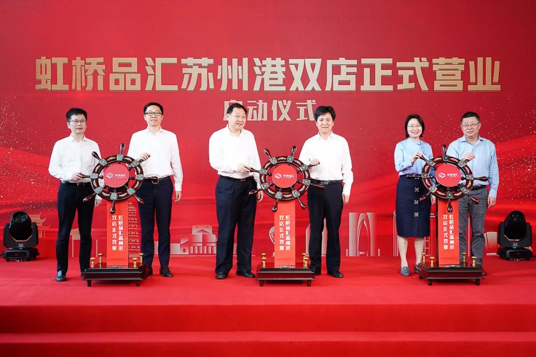 孫建江局長,宋長寶區長,東方國際集團朱繼東副總裁,虞美華常委,東方創業黨委副書記、李捷總經理,沈明總經理共同啟動虹橋品匯蘇州港雙店正式營業。