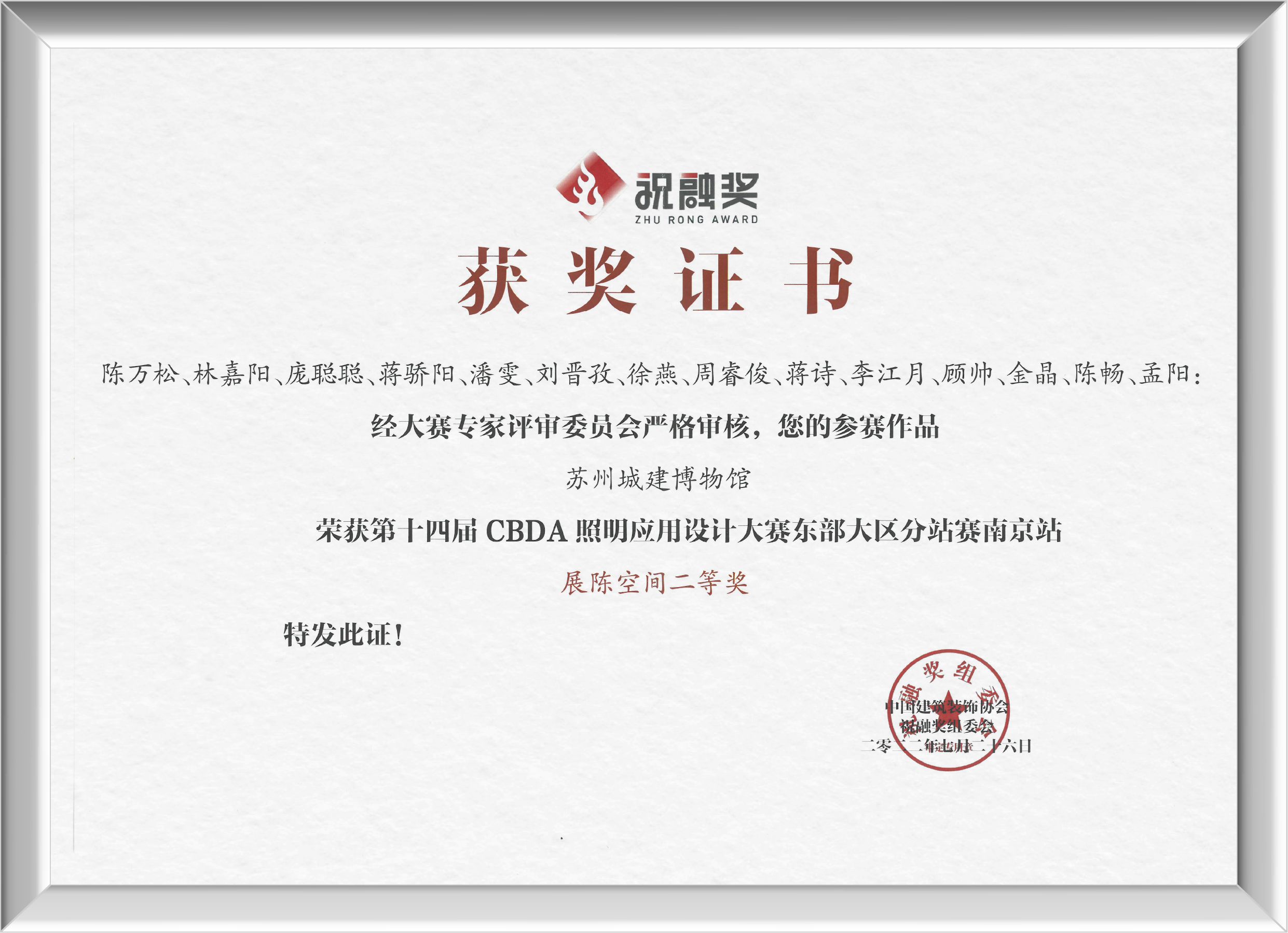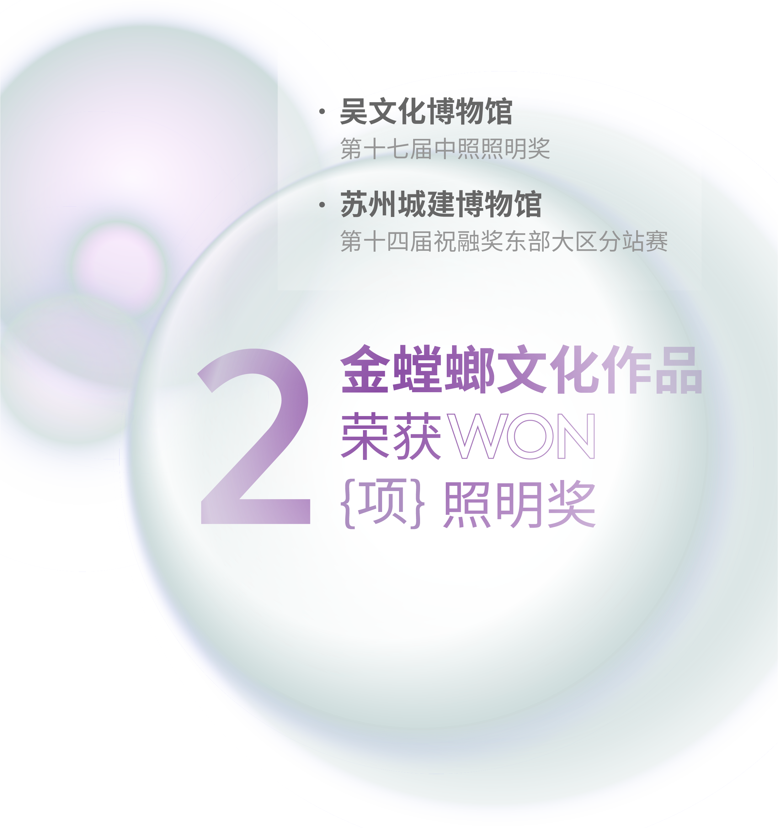 近日,第十七屆中照照明獎及第十四屆CBDA照明應用設計大賽(祝融獎)東部大區(qū)分站賽南京站獲獎名單公布,金螳螂文化作品吳文化博物館、蘇州城建博物館榮登榜單。 中照照明獎是由中國照明學會于2005年設立,經(jīng)科學技術部批準、國家科學技術獎勵工作辦公室登記的中國照明領域唯一獎項,旨在獎勵國內(nèi)外照明領域中,在科學研究、技術創(chuàng)新、成果推廣應用,實現(xiàn)高新技術產(chǎn)業(yè)化,照明工程實施和科普教育方面做出杰出貢獻的企事業(yè)單位和個人。 第十七屆中照照明獎評審結果正式公示,金螳螂文化設計項目吳文化博物館獲得本屆中照照明獎二等獎。 吳文化博物館位于澹臺湖景區(qū)世界文化遺產(chǎn)大運河及國保單位寶帶橋南側,建筑面積一萬八千余平方米。 不同展廳入口序廳的展示方式呈現(xiàn)多元化,為了凸顯風雅頌吳中的優(yōu)雅氣韻,嚴格控制發(fā)光亮度,以免與周圍環(huán)境形成過大的亮度對比。采用蘇州園林韻味的造景,利用多層次的對景、模擬天光以及一小段石町小路共同呈現(xiàn)。場景化的布置配和層次分明的照明氛圍,游客得以直觀地領略當年戰(zhàn)役的情景。 7月26日,由中國建筑裝飾協(xié)會主辦的第十四屆祝融獎CBDA照明應用設計大賽東部大區(qū)南京分站賽頒獎典禮暨照明設計應用高峰論壇順利舉行。 當晚的頒獎典禮上,組委會正式公布了2022年度祝融獎東部大區(qū)分站賽(南京)各空間獎項、佳作獎、優(yōu)勝獎等榮譽。金螳螂文化憑借作品蘇州城建博物館榮獲展陳空間二等獎。 蘇州城建博物館占地面積 1600 平方米,是以全國重點文物保護單位——衛(wèi)道觀前潘宅為基底改建的專業(yè)博物館。 建館、造景、養(yǎng)心,于平江古巷里,把握城市生長脈絡。金螳螂文化項目團隊以蘇州之窗為核心元素構建了穿越古今的時光通道,貫穿起蘇州城建博物館城紀千載、現(xiàn)代蘇城、城市生長、城市客廳、百館之城等主要展廳。 光影錯落,為空間增色。在各類展館的設計營造中,照明都是重要的一環(huán)。 金螳螂文化設計團隊合理引入自然光,嚴格把控展項光線,以求打造和諧舒適的觀展氛圍,讓空間更有故事。